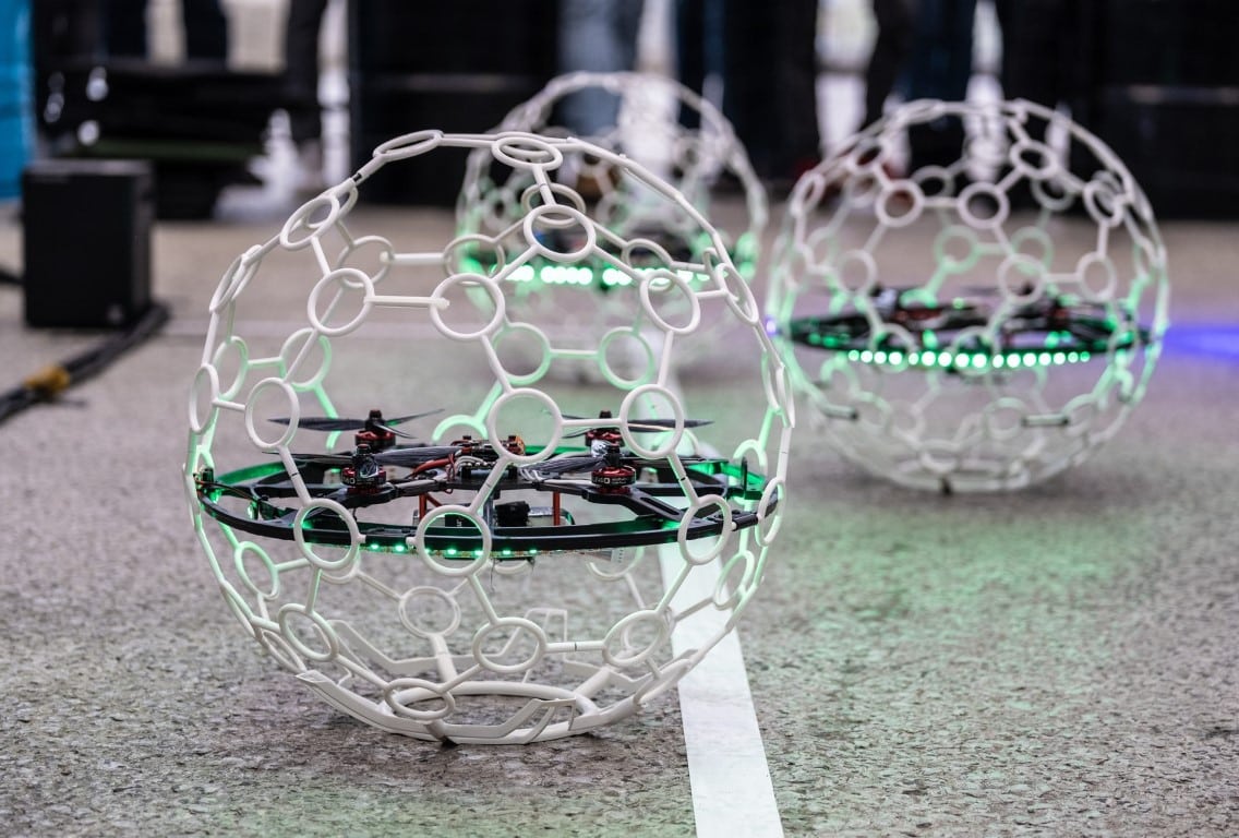 The Class 40 Drone is easy to assemble, requiring no soldering. The controller and battery are separate and can be purchased at any reputable drone store. With stellar engineering, maneuverability, speed, and durability, the Class 40 drone is the ultimate drone soccer ball for high level competition. It is the official FIDA drone soccer ball for Class 40 competitions. Multiple LED light options allow for ease of identifying each team during competition.